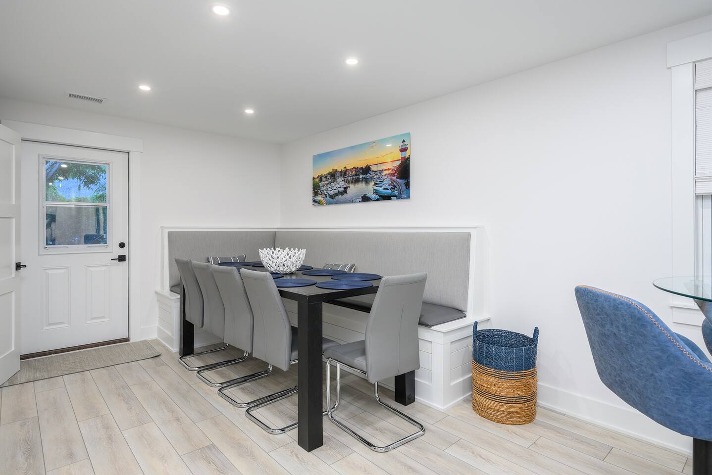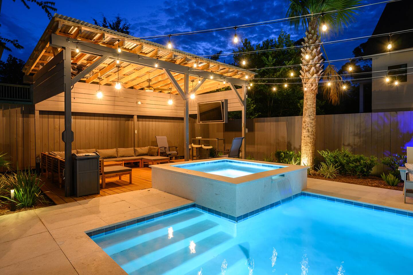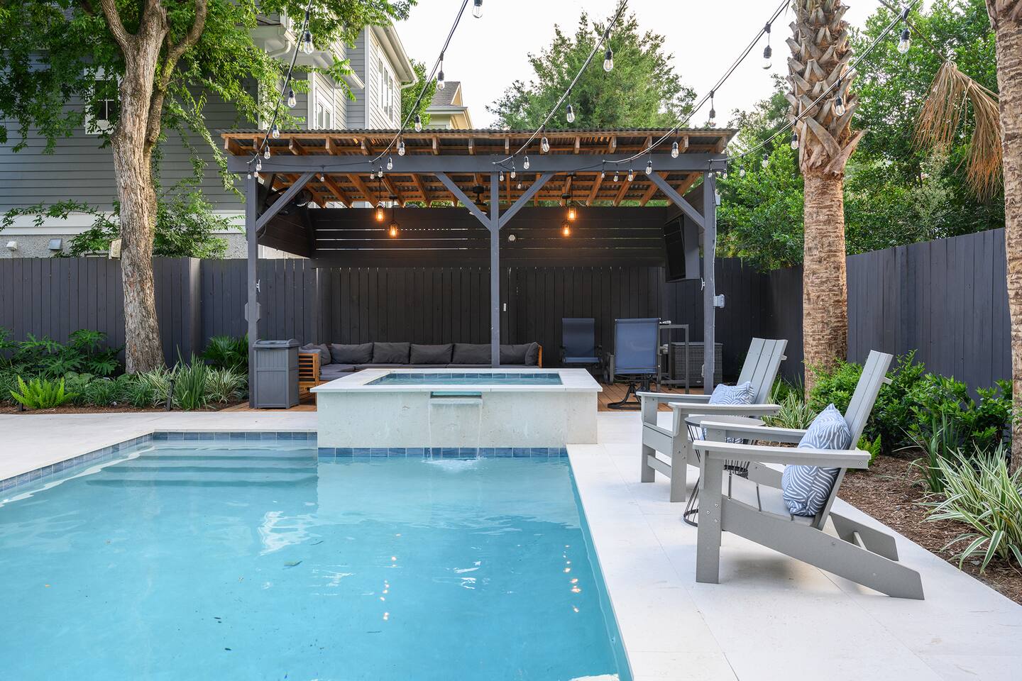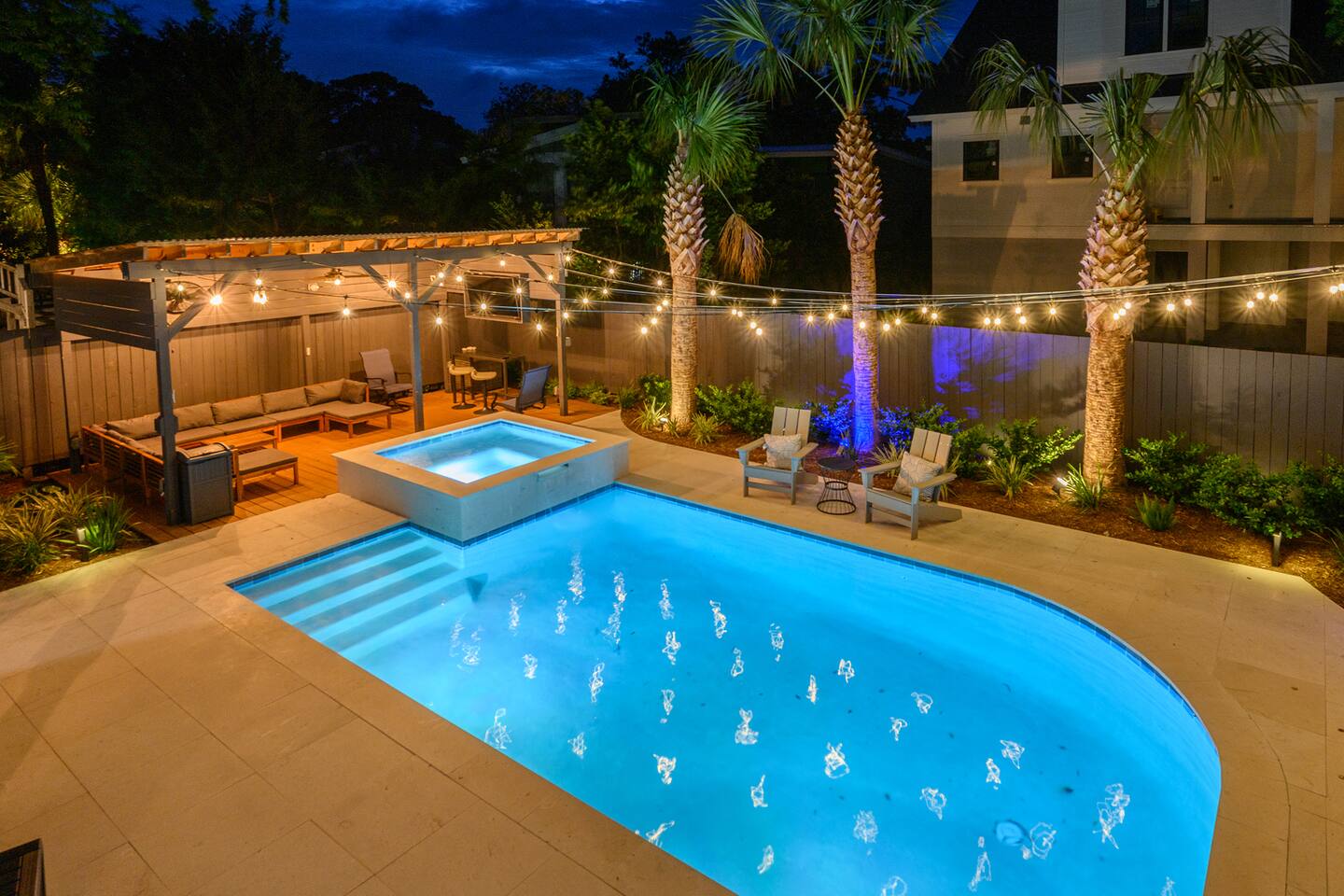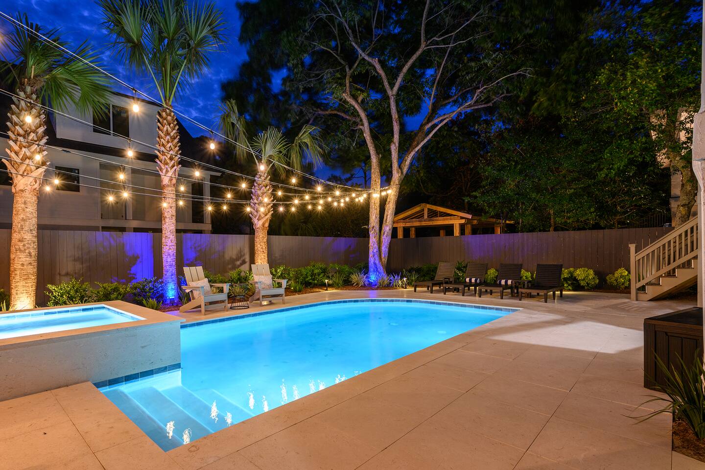This 6-bedroom, 5-bathroom home is designed to be your perfect getaway, where you can make lasting family memories and enjoy unparalleled comfort, luxury & relaxation. The stunning backyard oasis features a new pool, hot tub, & pergola with a 55" Outdoor TV. Copious lounge areas to soak up that Carolina sunshine. Sleeps 16 both comfortably & in style. Located beachside in the charming Folly Field neighborhood, blending historic and contemporary beach homes. Key Features: -Private & gated beach path(accessible to you) 30 steps from the front door. -Most quiet/relaxing section of the beach on Hilton Head -Renovated to the studs spring 2024, everything NEW! -Sleeps 16 comfortably (+ up to two well-behaved canine friends) -New pool & hot tub -No homes between you and the ocean -Located next to Folly Field Beach park. -55 inch outdoor TV & covered seating area -Loaded kitchen -Multiple outdoor living spaces -Historical relevance -Smart TV in every bedroom -5% weekly discount The open-concept main living area on boasts vaulted ceilings and plenty of natural light. Gather around the large, cozy sectional to watch a movie on the 65" flat-screen TV or enjoy a family game night. The space is perfect for relaxation and socializing, with stylish coastal décor that makes you feel right at home. There is a side porch off of this living area, perfect for indoor/outdoor living convenience. You will love the fully loaded kitchen w gas range featuring top-of-the-line appliances, quartz countertops, and a custom-built banquette dining area. Whether you’re preparing a gourmet meal or a quick snack mid-beach day, you’ll have everything you need. The dining area, with its unique design, is perfect for family meals and conversations. Including both indoor & outdoor dining tables. Step outside to your private backyard oasis, a highlight of our home. The large hot tub and luxurious pool are perfect for both relaxation and fun. The pergola, equipped with a 55-inch outdoor TV, offers a shaded retreat with seating for 10+, ideal for movie nights or catching up on your favorite shows. The beautifully lit pool area is a magical place to gather in the evenings, creating a serene and enchanting atmosphere. The front patio and side porch provide additional spaces to unwind, with comfortable seating and lovely views of the neighborhood. The outdoor custom shower is a delightful feature after a day at the beach. One of the most compelling features of our home is its proximity to the beach. Just 30 steps away, a private, gated path leads you to one of Hilton Head's most beautiful and serene beaches. This stretch of beach is less crowded than others, offering a tranquil setting for sunbathing, swimming, and beachcombing. You can even hear the soothing sounds of the waves from the house! The Neighborhood: Folly Field is a unique blend of historic charm and modern beach living. The neighborhood features a mix of old-school beach houses and newer homes, creating a vibrant and eclectic community. Historically Relevance: When Hilton Head Island was being developed they built the first homes in the best locations. In 1954 this home was the 6th home to receive a certificate of occupancy on the Island. At the time the town of Hilton Head required 6 "COs" to start the permitting process to build a bridge from the mainland to Hilton Head. Memories to Make: Our home is designed to be more than just a place to stay. The spacious layout and numerous amenities ensure that everyone, from kids to grandparents, will have a wonderful time. Whether you’re here for a family reunion, a holiday gathering, or a summer vacation, our beach house is the perfect backdrop for creating unforgettable memories. Book your stay with us and experience the best of Hilton Head Island. We can't wait to see you on Island Time!
