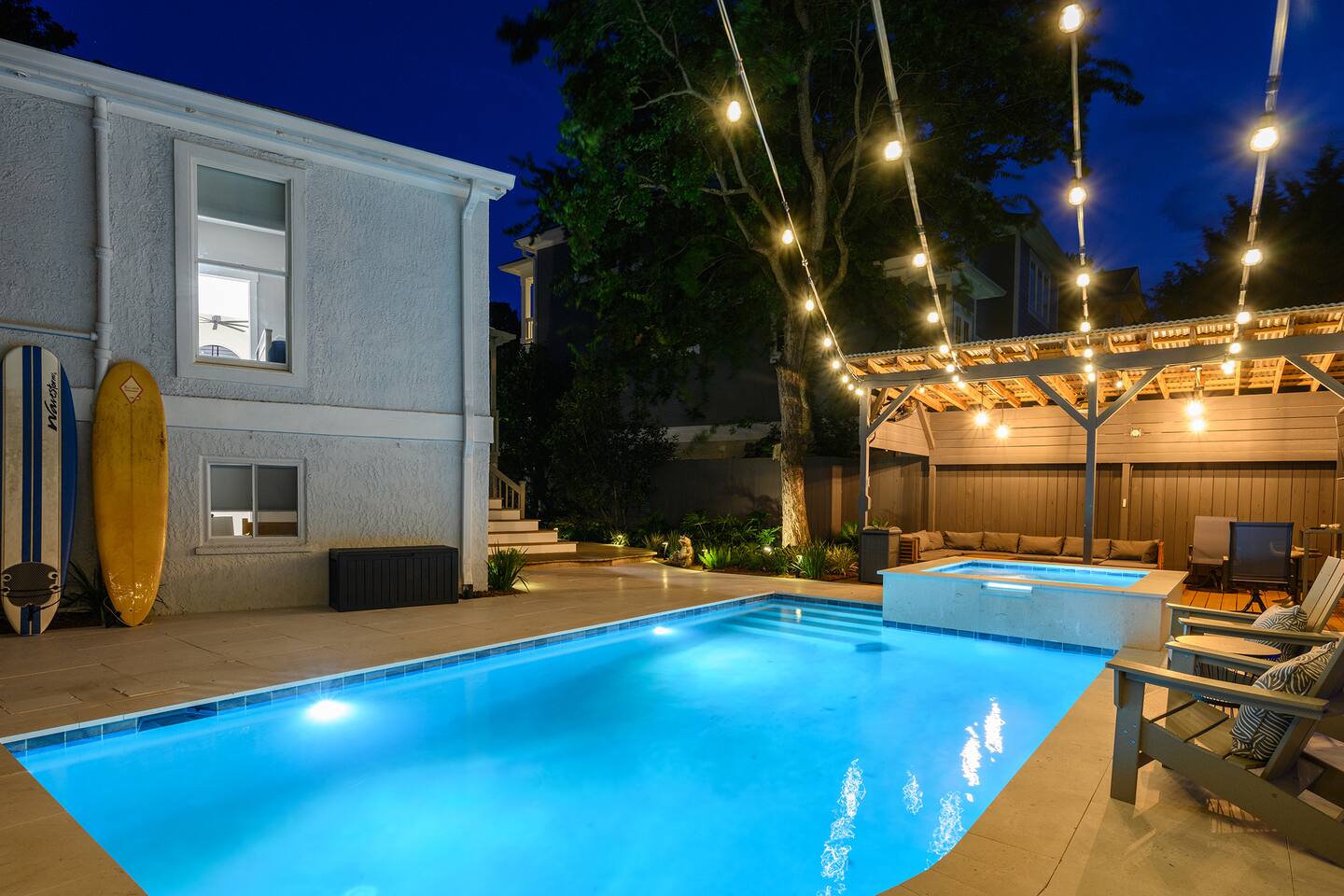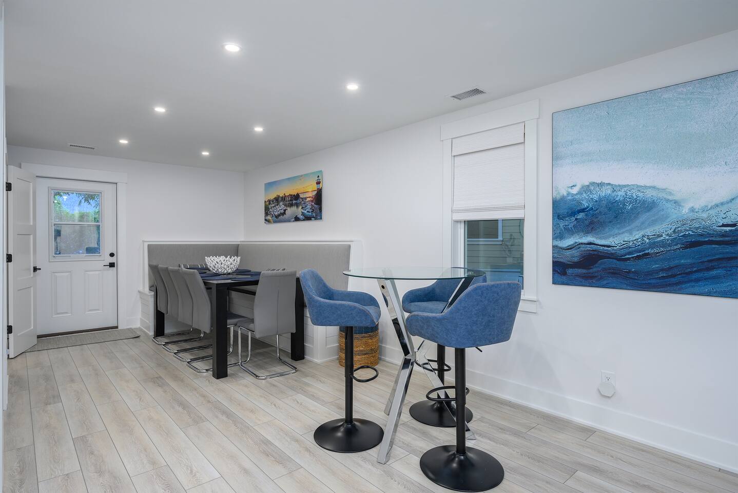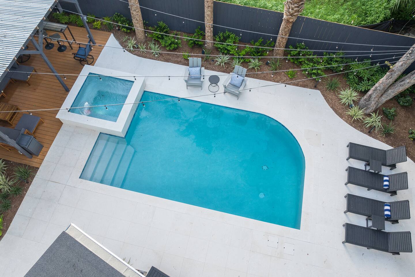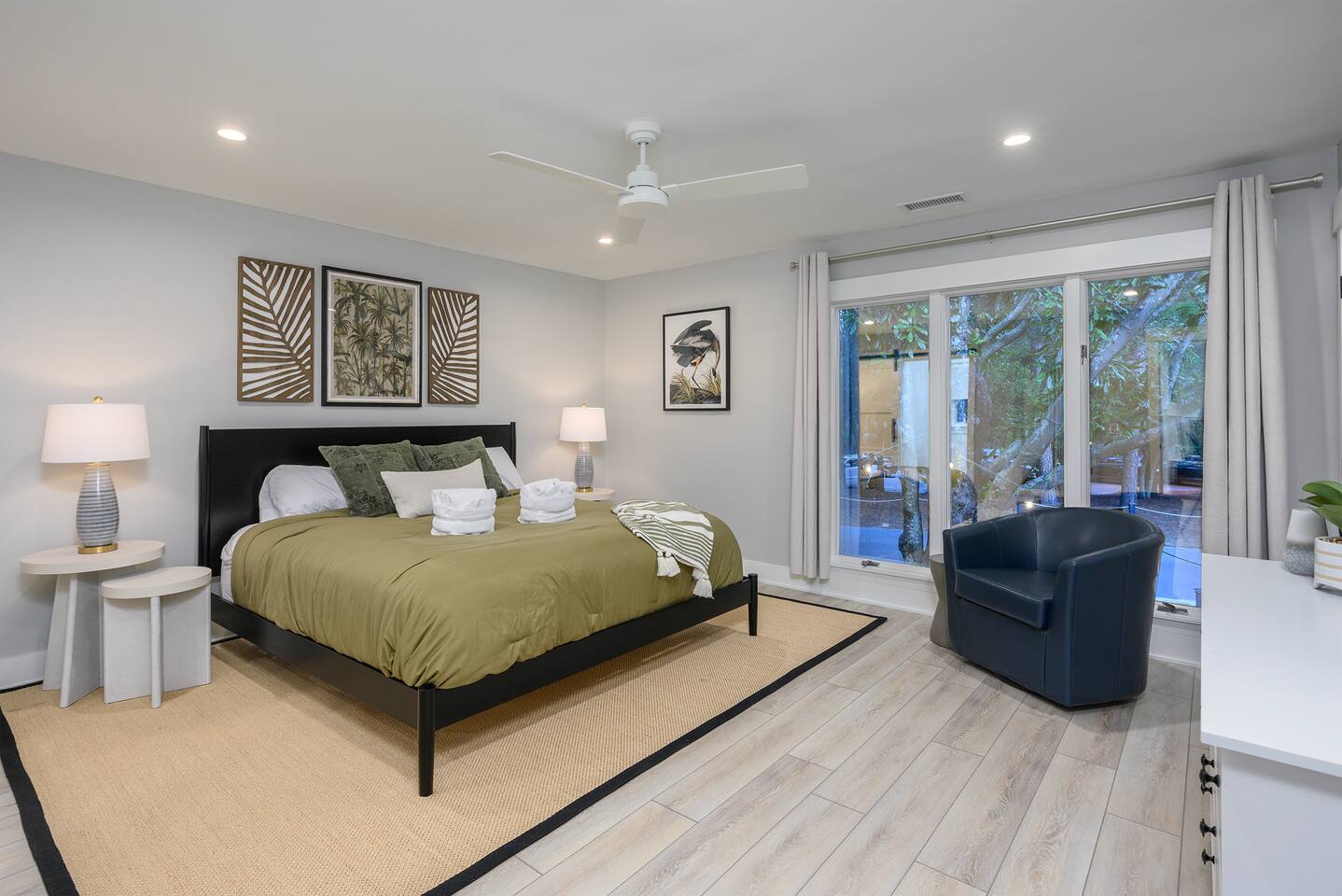 This 6-bedroom, 5-bathroom home is designed to be your perfect getaway, where you can make lasting family memories and enjoy unparalleled comfort, luxury & relaxation. The stunning backyard oasis features a new pool, hot tub, & pergola with a 55" Outdoor TV. Copious lounge areas to soak up that Carolina sunshine. Sleeps 16 both comfortably & in style. Located beachside in the charming Folly Field neighborhood, blending historic and contemporary beach homes. Key Features: -Private & gated beach path(accessible to you) 30 steps from the front door. -Most quiet/relaxing section of the beach on Hilton Head -Renovated to the studs spring 2024, everything NEW! -Sleeps 16 comfortably (+ up to two well-behaved canine friends) -New pool & hot tub -No homes between you and the ocean -Located next to Folly Field Beach park. -55 inch outdoor TV & covered seating area -Loaded kitchen -Multiple outdoor living spaces -Historical relevance -Smart TV in every bedroom -5% weekly discount The open-concept main living area on boasts vaulted ceilings and plenty of natural light. Gather around the large, cozy sectional to watch a movie on the 65" flat-screen TV or enjoy a family game night. The space is perfect for relaxation and socializing, with stylish coastal décor that makes you feel right at home. There is a side porch off of this living area, perfect for indoor/outdoor living convenience. You will love the fully loaded kitchen w gas range featuring top-of-the-line appliances, quartz countertops, and a custom-built banquette dining area. Whether you’re preparing a gourmet meal or a quick snack mid-beach day, you’ll have everything you need. The dining area, with its unique design, is perfect for family meals and conversations. Including both indoor & outdoor dining tables. Step outside to your private backyard oasis, a highlight of our home. The large hot tub and luxurious pool are perfect for both relaxation and fun. The pergola, equipped with a 55-inch outdoor TV, offers a shaded retreat with seating for 10+, ideal for movie nights or catching up on your favorite shows. The beautifully lit pool area is a magical place to gather in the evenings, creating a serene and enchanting atmosphere. The front patio and side porch provide additional spaces to unwind, with comfortable seating and lovely views of the neighborhood. The outdoor custom shower is a delightful feature after a day at the beach. One of the most compelling features of our home is its proximity to the beach. Just 30 steps away, a private, gated path leads you to one of Hilton Head's most beautiful and serene beaches. This stretch of beach is less crowded than others, offering a tranquil setting for sunbathing, swimming, and beachcombing. You can even hear the soothing sounds of the waves from the house! The Neighborhood: Folly Field is a unique blend of historic charm and modern beach living. The neighborhood features a mix of old-school beach houses and newer homes, creating a vibrant and eclectic community. Historically Relevance: When Hilton Head Island was being developed they built the first homes in the best locations. In 1954 this home was the 6th home to receive a certificate of occupancy on the Island. At the time the town of Hilton Head required 6 "COs" to start the permitting process to build a bridge from the mainland to Hilton Head. Memories to Make: Our home is designed to be more than just a place to stay. The spacious layout and numerous amenities ensure that everyone, from kids to grandparents, will have a wonderful time. Whether you’re here for a family reunion, a holiday gathering, or a summer vacation, our beach house is the perfect backdrop for creating unforgettable memories. Book your stay with us and experience the best of Hilton Head Island. We can't wait to see you on Island Time!