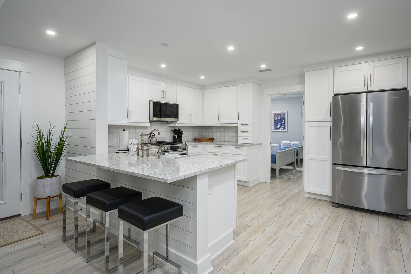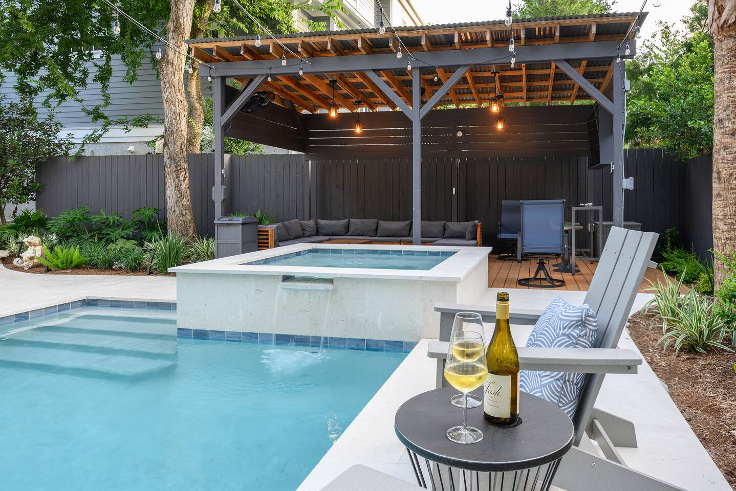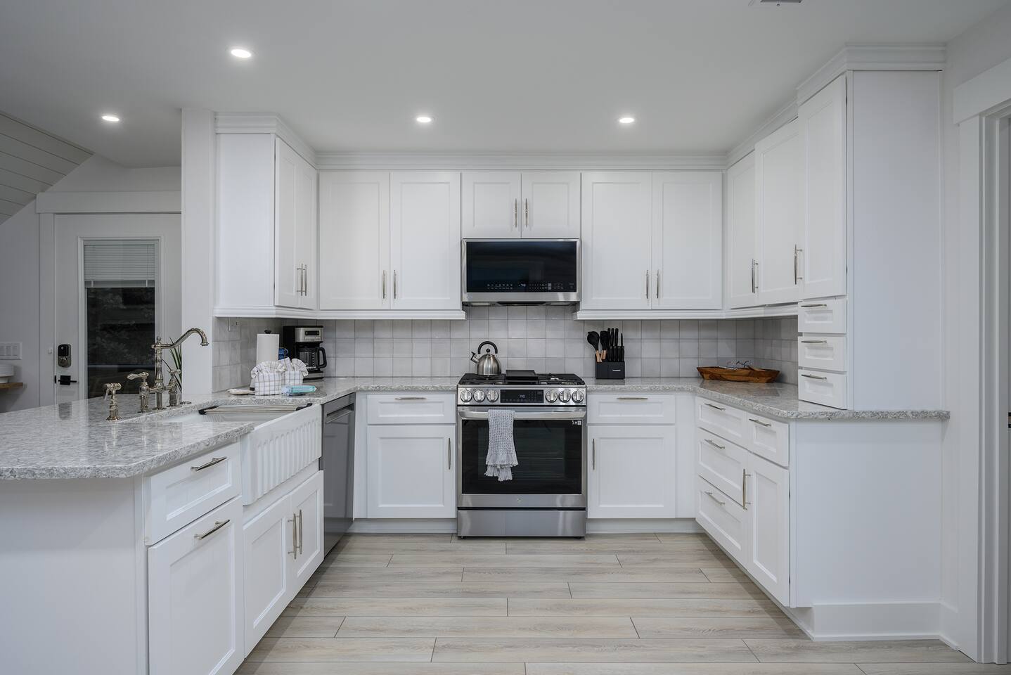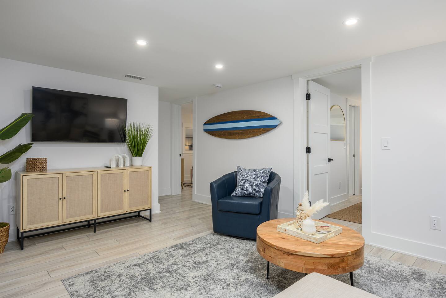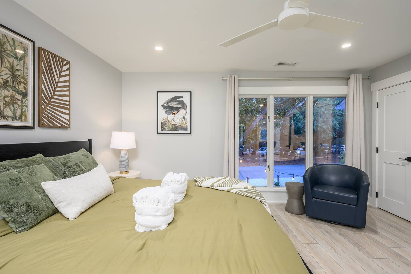 This 6-bedroom, 5-bathroom home is designed to be your perfect getaway, where you can make lasting family memories and enjoy unparalleled comfort, luxury & relaxation. The stunning backyard oasis features a new pool, hot tub, & pergola with a 55" Outdoor TV. Copious lounge areas to soak up that Carolina sunshine. Sleeps 16 both comfortably & in style. Located beachside in the charming Folly Field neighborhood, blending historic and contemporary beach homes. Key Features: -Private & gated beach path(accessible to you) 30 steps from the front door. -Most quiet/relaxing section of the beach on Hilton Head -Renovated to the studs spring 2024, everything NEW! -Sleeps 16 comfortably (+ up to two well-behaved canine friends) -New pool & hot tub -No homes between you and the ocean -Located next to Folly Field Beach park. -55 inch outdoor TV & covered seating area -Loaded kitchen -Multiple outdoor living spaces -Historical relevance -Smart TV in every bedroom -5% weekly discount The open-concept main living area on boasts vaulted ceilings and plenty of natural light. Gather around the large, cozy sectional to watch a movie on the 65" flat-screen TV or enjoy a family game night. The space is perfect for relaxation and socializing, with stylish coastal décor that makes you feel right at home. There is a side porch off of this living area, perfect for indoor/outdoor living convenience. You will love the fully loaded kitchen w gas range featuring top-of-the-line appliances, quartz countertops, and a custom-built banquette dining area. Whether you’re preparing a gourmet meal or a quick snack mid-beach day, you’ll have everything you need. The dining area, with its unique design, is perfect for family meals and conversations. Including both indoor & outdoor dining tables. Step outside to your private backyard oasis, a highlight of our home. The large hot tub and luxurious pool are perfect for both relaxation and fun. The pergola, equipped with a 55-inch outdoor TV, offers a shaded retreat with seating for 10+, ideal for movie nights or catching up on your favorite shows. The beautifully lit pool area is a magical place to gather in the evenings, creating a serene and enchanting atmosphere. The front patio and side porch provide additional spaces to unwind, with comfortable seating and lovely views of the neighborhood. The outdoor custom shower is a delightful feature after a day at the beach. One of the most compelling features of our home is its proximity to the beach. Just 30 steps away, a private, gated path leads you to one of Hilton Head's most beautiful and serene beaches. This stretch of beach is less crowded than others, offering a tranquil setting for sunbathing, swimming, and beachcombing. You can even hear the soothing sounds of the waves from the house! The Neighborhood: Folly Field is a unique blend of historic charm and modern beach living. The neighborhood features a mix of old-school beach houses and newer homes, creating a vibrant and eclectic community. Historically Relevance: When Hilton Head Island was being developed they built the first homes in the best locations. In 1954 this home was the 6th home to receive a certificate of occupancy on the Island. At the time the town of Hilton Head required 6 "COs" to start the permitting process to build a bridge from the mainland to Hilton Head. Memories to Make: Our home is designed to be more than just a place to stay. The spacious layout and numerous amenities ensure that everyone, from kids to grandparents, will have a wonderful time. Whether you’re here for a family reunion, a holiday gathering, or a summer vacation, our beach house is the perfect backdrop for creating unforgettable memories. Book your stay with us and experience the best of Hilton Head Island. We can't wait to see you on Island Time!